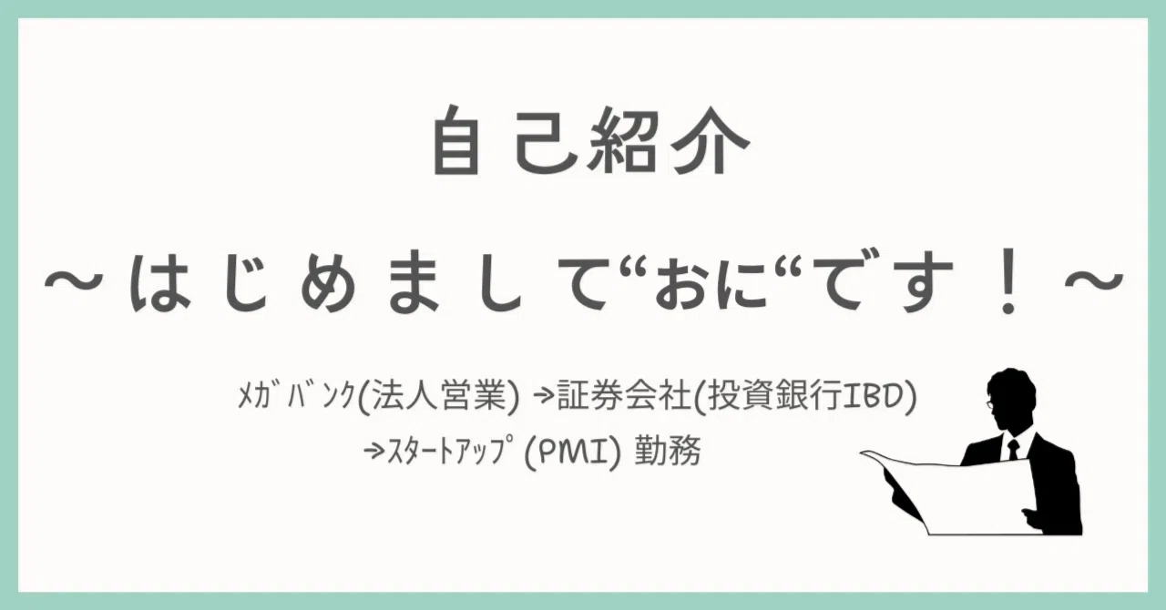 【メガバンク(法人営業) →証券会社(投資銀行IBD) →スタートアップ(PMI) 勤務:おに】自己紹介~はじめまして"おに"です!~